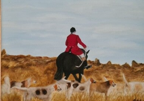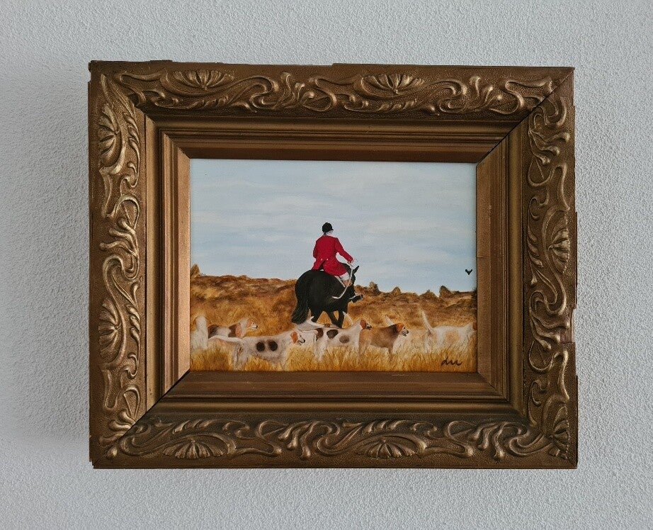 Slipjacht op de heide, miniatuur schilderij, geschilderd op masonite.